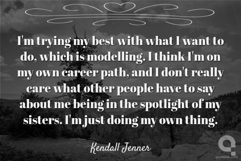I'm trying my best with what I want to do, which is modelling. I think I'm on my own career path, and I don't really care what other people have to say about me being in the spotlight of my sisters. I'm just doing my own thing.
