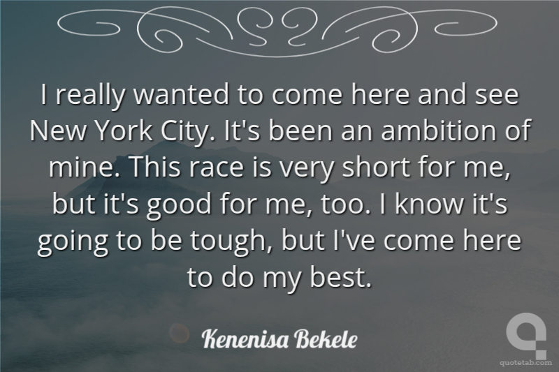 I really wanted to come here and see New York City. It's been an ambition of mine. This race is very short for me, but it's good for me, too. I know it's going to be tough, but I've come here to do my best.