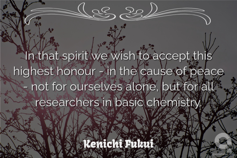 In that spirit we wish to accept this highest honour - in the cause of peace - not for ourselves alone, but for all researchers in basic chemistry.
