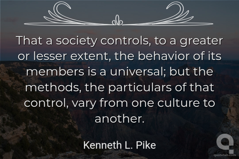 That a society controls, to a greater or lesser extent, the behavior of its members is a universal; but the methods, the particulars of that control, vary from one culture to another.