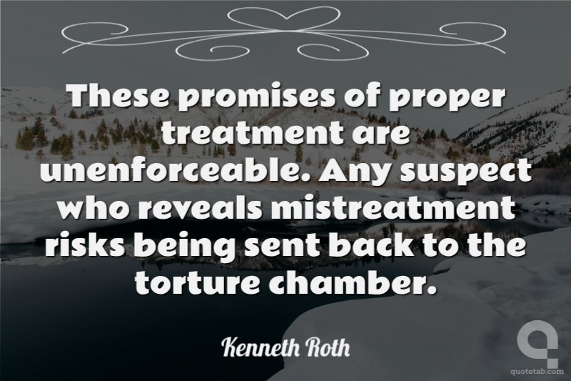 These promises of proper treatment are unenforceable. Any suspect who reveals mistreatment risks being sent back to the torture chamber.
