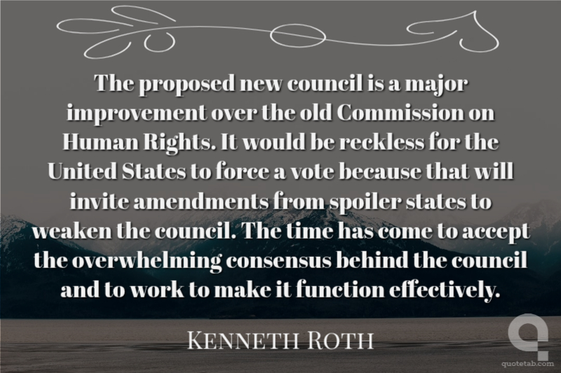 The proposed new council is a major improvement over the old Commission on Human Rights. It would be reckless for the United States to force a vote because that will invite amendments from spoiler states to weaken the council. The time has come to accept the overwhelming consensus behind the council and to work to make it function effectively.