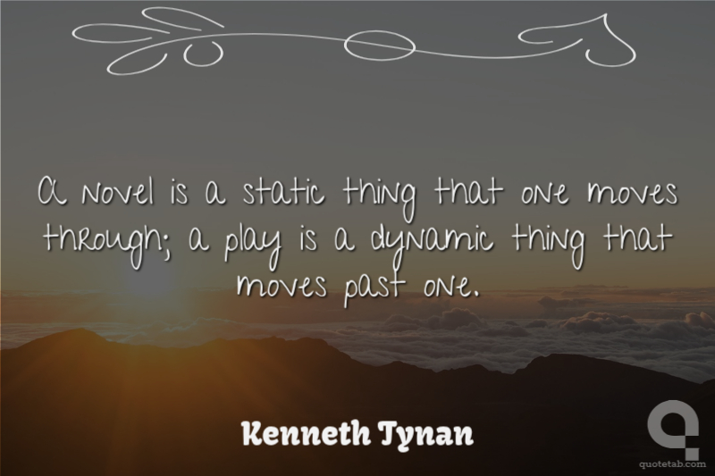 A novel is a static thing that one moves through; a play is a dynamic thing that moves past one.