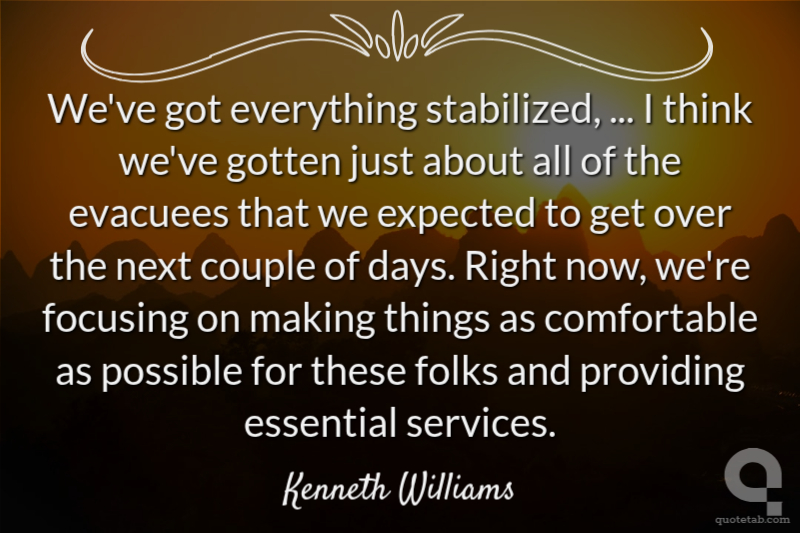We've got everything stabilized, ... I think we've gotten just about all of the evacuees that we expected to get over the next couple of days. Right now, we're focusing on making things as comfortable as possible for these folks and providing essential services.