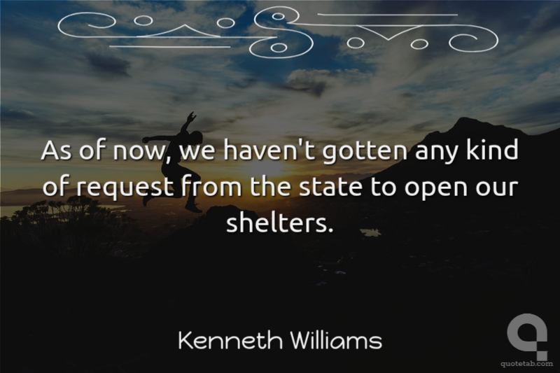 As of now, we haven't gotten any kind of request from the state to open our shelters.