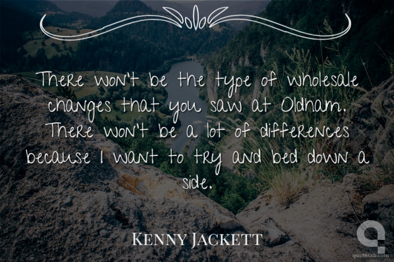 There won't be the type of wholesale changes that you saw at Oldham. There won't be a lot of differences because I want to try and bed down a side.