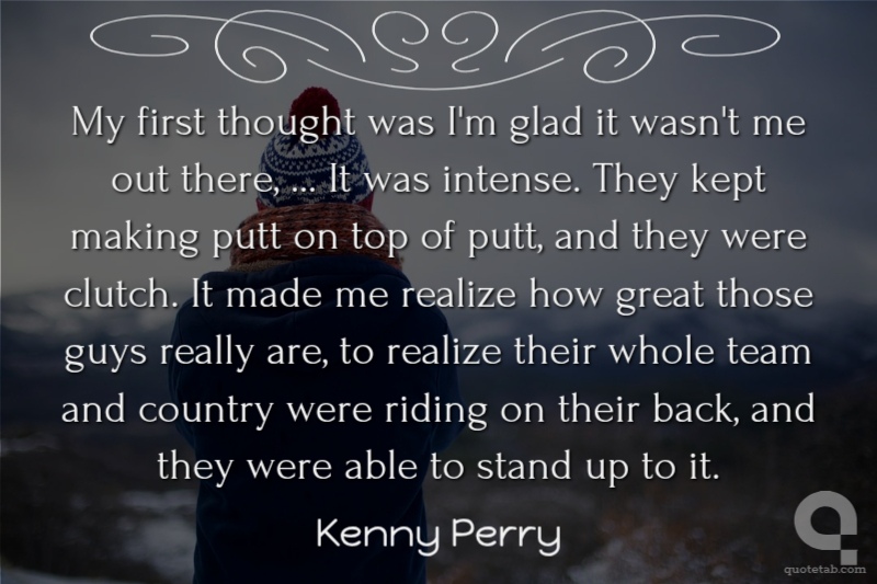 My first thought was I'm glad it wasn't me out there, ... It was intense. They kept making putt on top of putt, and they were clutch. It made me realize how great those guys really are, to realize their whole team and country were riding on their back, and they were able to stand up to it.