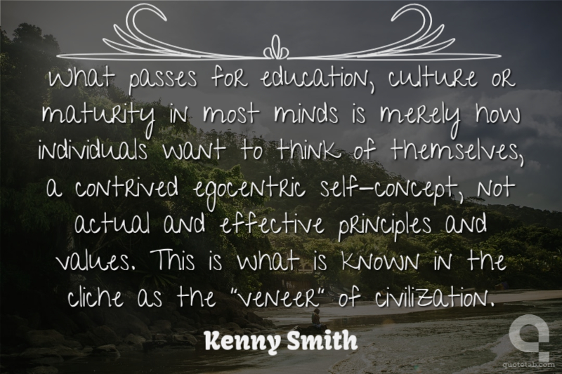 What passes for education, culture or maturity in most minds is merely how individuals want to think of themselves, a contrived egocentric self-concept, not actual and effective principles and values. This is what is known in the cliche as the "veneer" of civilization.