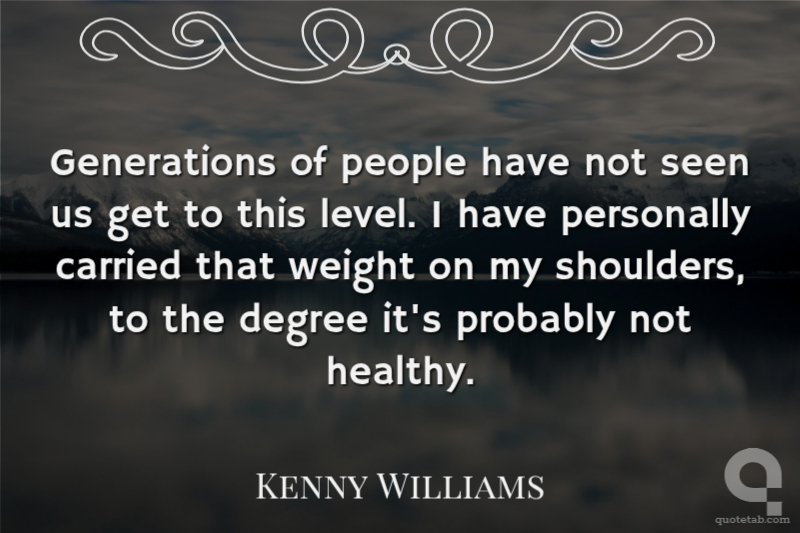 Generations of people have not seen us get to this level. I have personally carried that weight on my shoulders, to the degree it's probably not healthy.