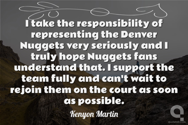 I take the responsibility of representing the Denver Nuggets very seriously and I truly hope Nuggets fans understand that. I support the team fully and can't wait to rejoin them on the court as soon as possible.