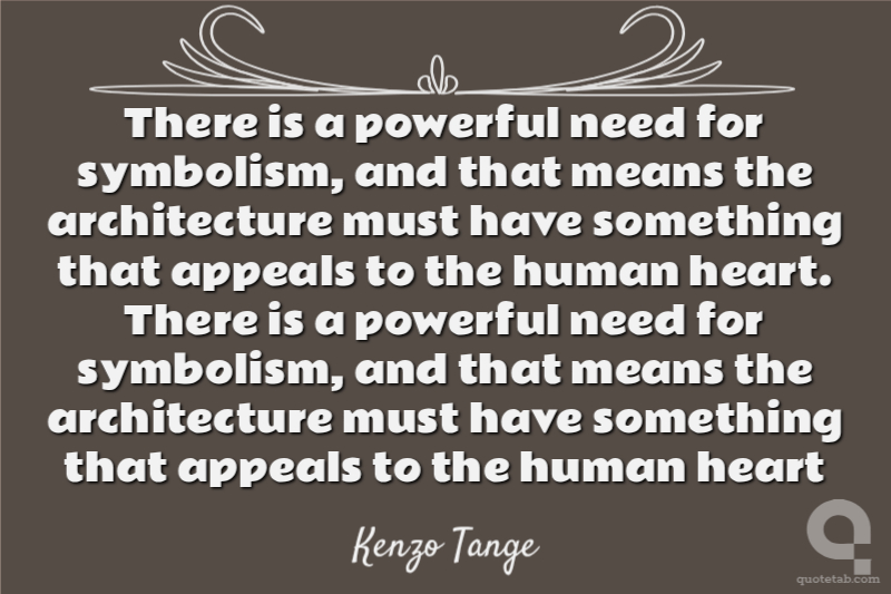 There is a powerful need for symbolism, and that means the architecture must have something that appeals to the human heart. There is a powerful need for symbolism, and that means the architecture must have something that appeals to the human heart