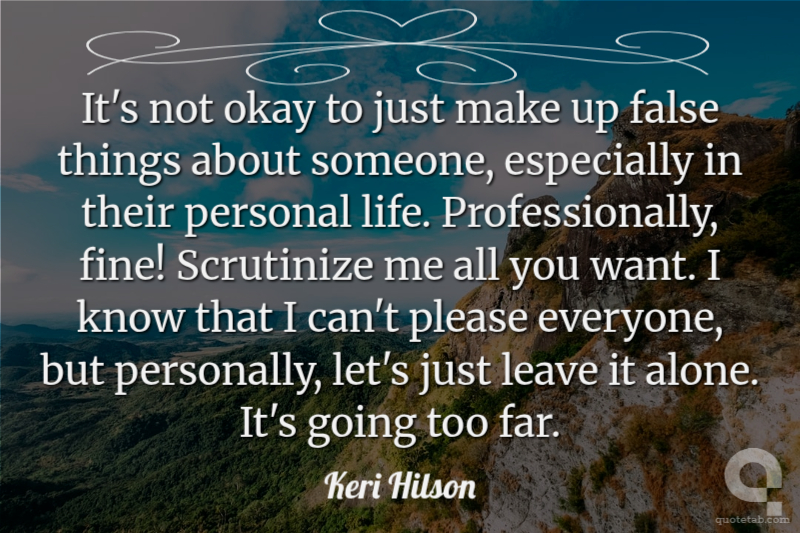 It's not okay to just make up false things about someone, especially in their personal life. Professionally, fine! Scrutinize me all you want. I know that I can't please everyone, but personally, let's just leave it alone. It's going too far.
