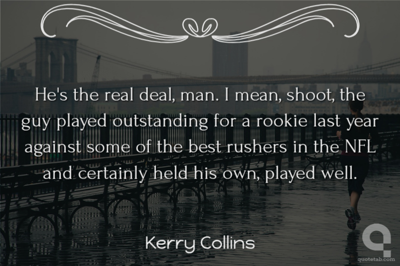 He's the real deal, man. I mean, shoot, the guy played outstanding for a rookie last year against some of the best rushers in the NFL and certainly held his own, played well.