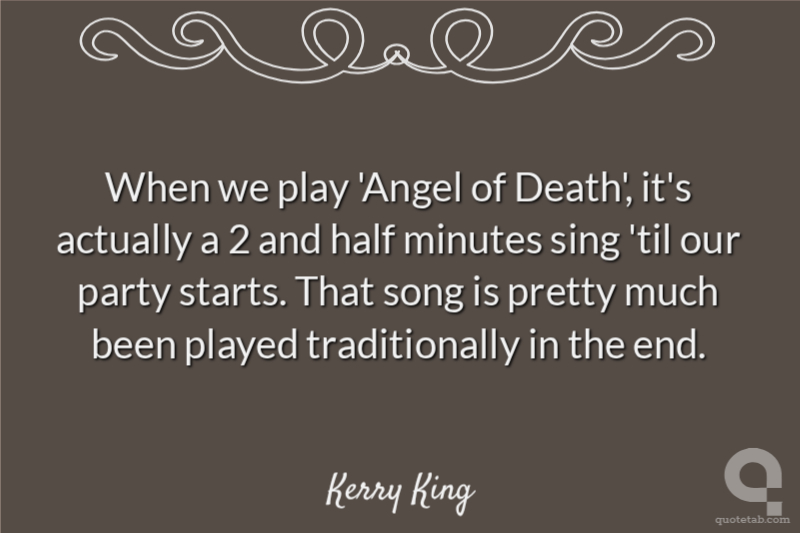 When we play 'Angel of Death', it's actually a 2 and half minutes sing 'til our party starts. That song is pretty much been played traditionally in the end.