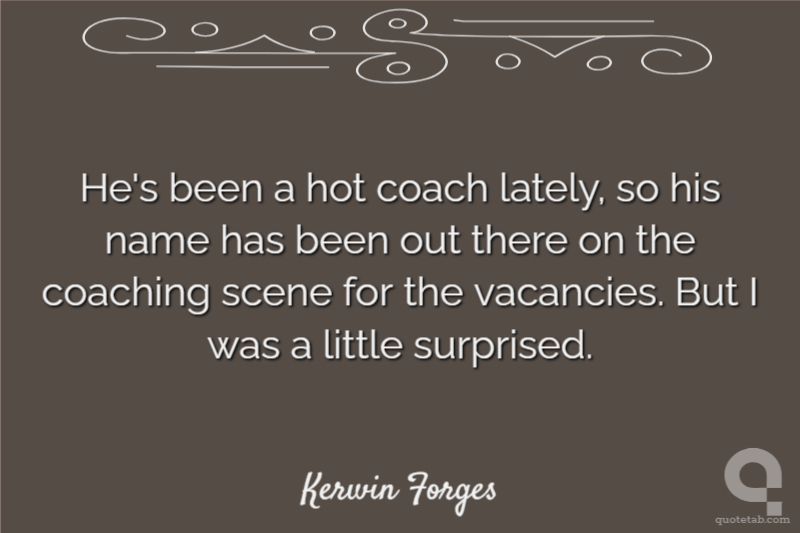 He's been a hot coach lately, so his name has been out there on the coaching scene for the vacancies. But I was a little surprised.