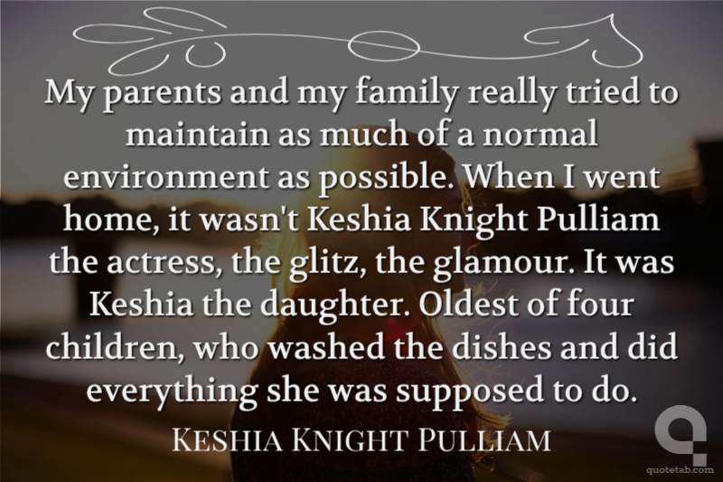 My parents and my family really tried to maintain as much of a normal environment as possible. When I went home, it wasn't Keshia Knight Pulliam the actress, the glitz, the glamour. It was Keshia the daughter. Oldest of four children, who washed the dishes and did everything she was supposed to do.