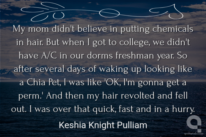 My mom didn't believe in putting chemicals in hair. But when I got to college, we didn't have A/C in our dorms freshman year. So after several days of waking up looking like a Chia Pet, I was like 'OK, I'm gonna get a perm.' And then my hair revolted and fell out. I was over that quick, fast and in a hurry.