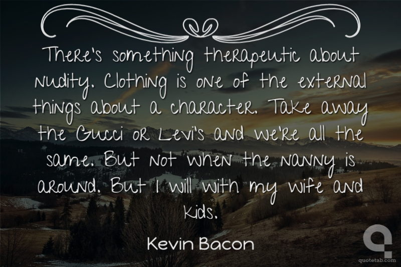 There's something therapeutic about nudity. Clothing is one of the external things about a character. Take away the Gucci or Levi's and we're all the same. But not when the nanny is around. But I will with my wife and kids.