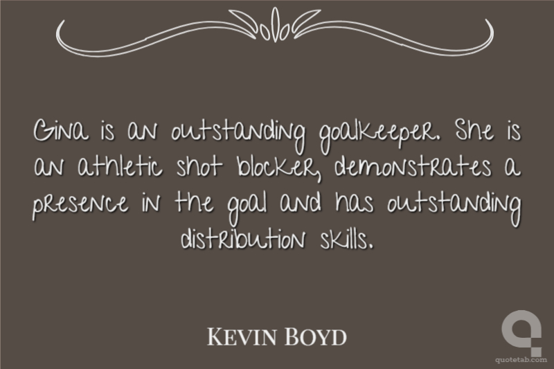 Gina is an outstanding goalkeeper. She is an athletic shot blocker, demonstrates a presence in the goal and has outstanding distribution skills.
