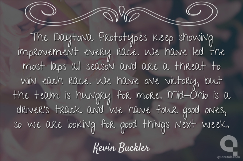 The Daytona Prototypes keep showing improvement every race. We have led the most laps all season and are a threat to win each race. We have one victory, but the team is hungry for more. Mid-Ohio is a driver's track and we have four good ones, so we are looking for good things next week.