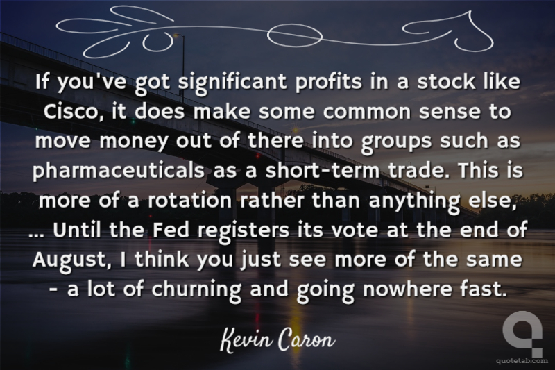 If you've got significant profits in a stock like Cisco, it does make some common sense to move money out of there into groups such as pharmaceuticals as a short-term trade. This is more of a rotation rather than anything else, ... Until the Fed registers its vote at the end of August, I think you just see more of the same - a lot of churning and going nowhere fast.