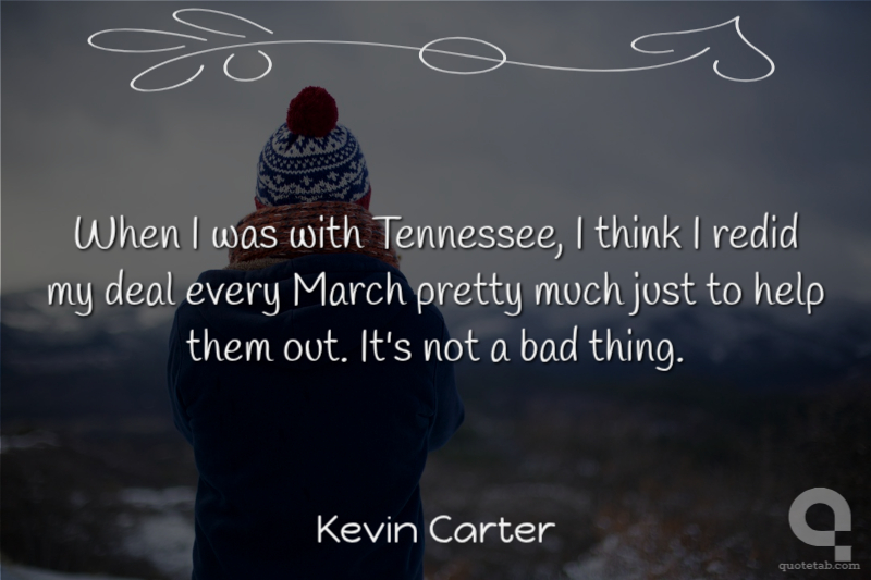 When I was with Tennessee, I think I redid my deal every March pretty much just to help them out. It's not a bad thing.