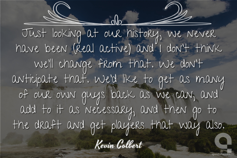Just looking at our history, we never have been (real active) and I don't think we'll change from that. We don't anticipate that. We'd like to get as many of our own guys back as we can, and add to it as necessary, and then go to the draft and get players that way also.