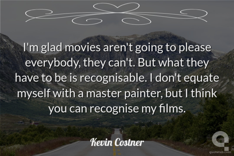 I'm glad movies aren't going to please everybody, they can't. But what they have to be is recognisable. I don't equate myself with a master painter, but I think you can recognise my films.