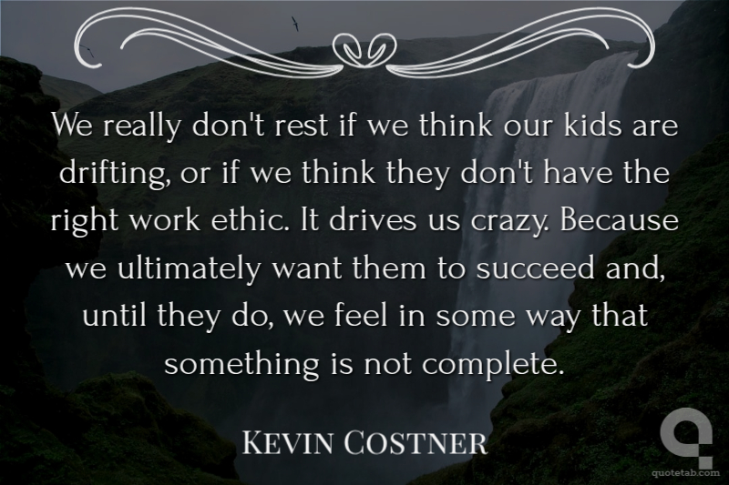 We really don't rest if we think our kids are drifting, or if we think they don't have the right work ethic. It drives us crazy. Because we ultimately want them to succeed and, until they do, we feel in some way that something is not complete.