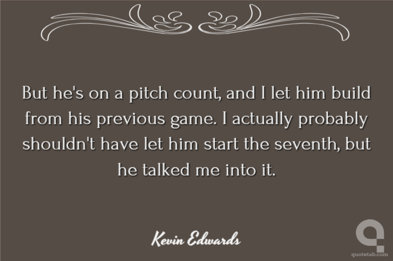 But he's on a pitch count, and I let him build from his previous game. I actually probably shouldn't have let him start the seventh, but he talked me into it.