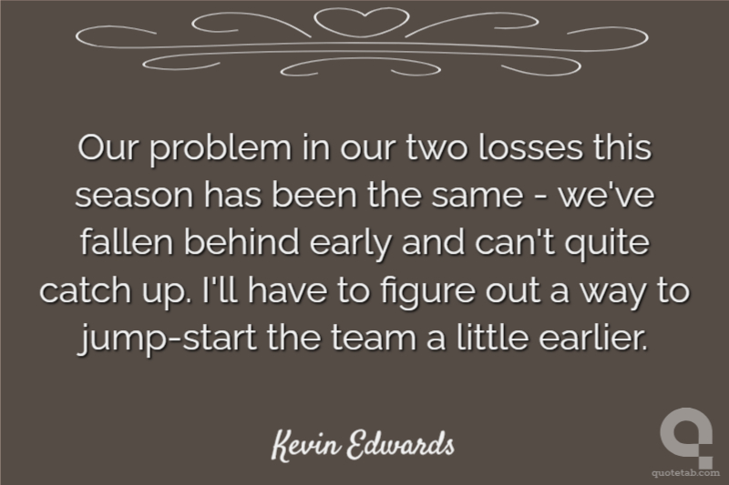 Our problem in our two losses this season has been the same - we've fallen behind early and can't quite catch up. I'll have to figure out a way to jump-start the team a little earlier.