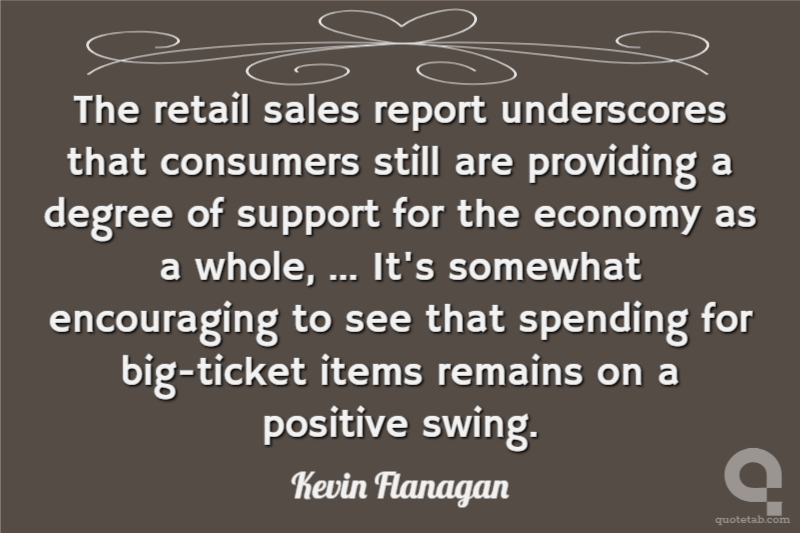 The retail sales report underscores that consumers still are providing a degree of support for the economy as a whole, ... It's somewhat encouraging to see that spending for big-ticket items remains on a positive swing.