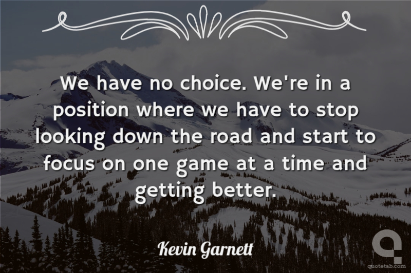 We have no choice. We're in a position where we have to stop looking down the road and start to focus on one game at a time and getting better.