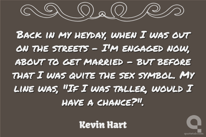 Back in my heyday, when I was out on the streets - I'm engaged now, about to get married - but before that I was quite the sex symbol. My line was, "If I was taller, would I have a chance?".