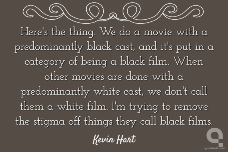 Here's the thing. We do a movie with a predominantly black cast, and it's put in a category of being a black film. When other movies are done with a predominantly white cast, we don't call them a white film. I'm trying to remove the stigma off things they call black films.