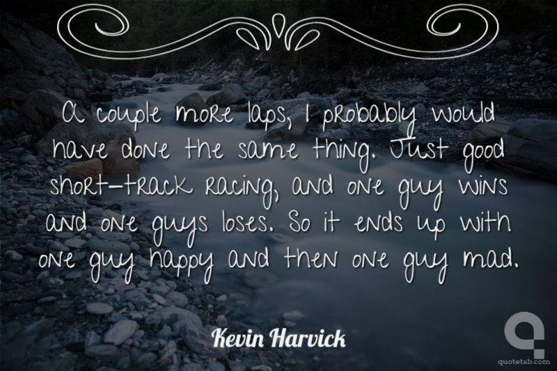 A couple more laps, I probably would have done the same thing. Just good short-track racing, and one guy wins and one guys loses. So it ends up with one guy happy and then one guy mad.
