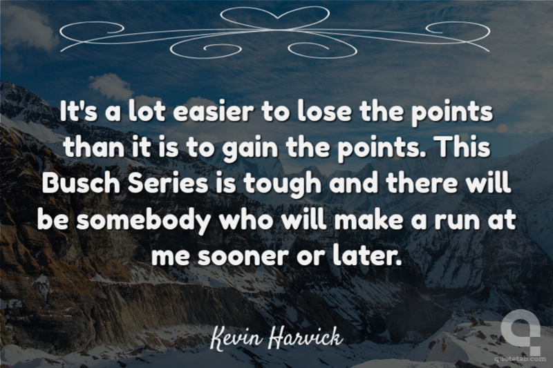 It's a lot easier to lose the points than it is to gain the points. This Busch Series is tough and there will be somebody who will make a run at me sooner or later.
