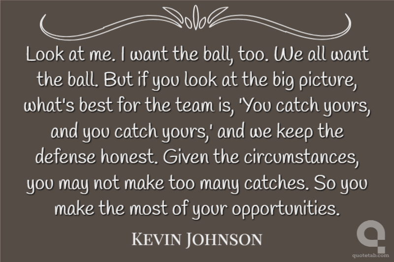 Look at me. I want the ball, too. We all want the ball. But if you look at the big picture, what's best for the team is, 'You catch yours, and you catch yours,' and we keep the defense honest. Given the circumstances, you may not make too many catches. So you make the most of your opportunities.