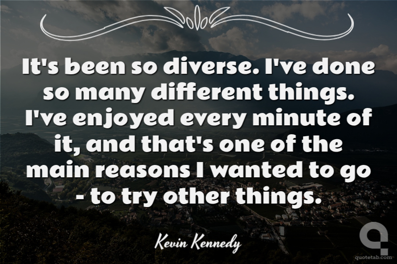 It's been so diverse. I've done so many different things. I've enjoyed every minute of it, and that's one of the main reasons I wanted to go - to try other things.