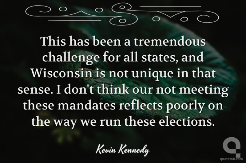 This has been a tremendous challenge for all states, and Wisconsin is not unique in that sense. I don't think our not meeting these mandates reflects poorly on the way we run these elections.