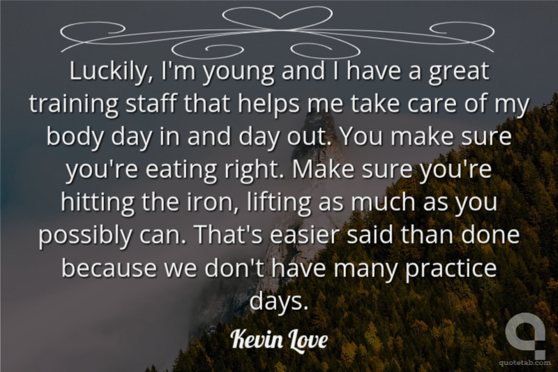Luckily, I'm young and I have a great training staff that helps me take care of my body day in and day out. You make sure you're eating right. Make sure you're hitting the iron, lifting as much as you possibly can. That's easier said than done because we don't have many practice days.