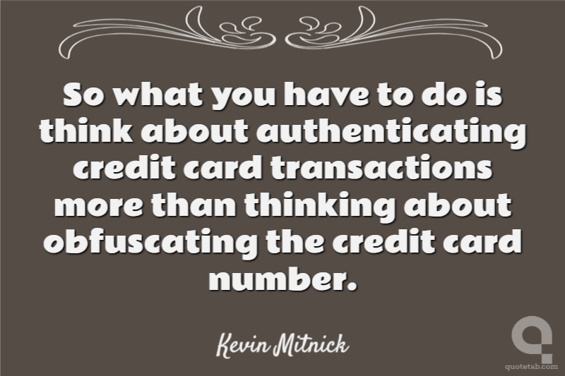 So what you have to do is think about authenticating credit card transactions more than thinking about obfuscating the credit card number.