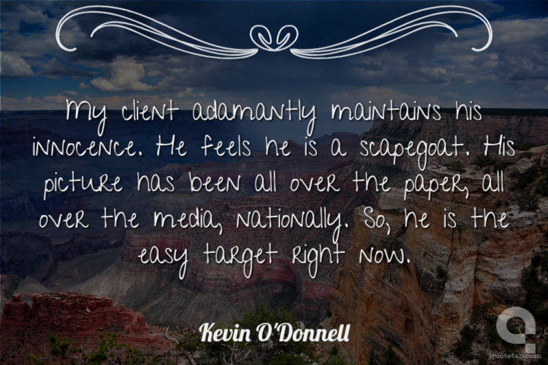 My client adamantly maintains his innocence. He feels he is a scapegoat. His picture has been all over the paper, all over the media, nationally. So, he is the easy target right now.
