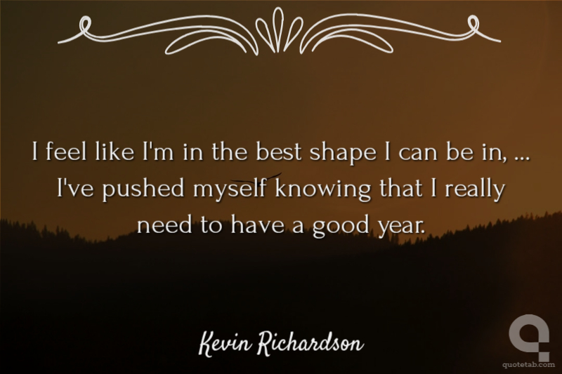 I feel like I'm in the best shape I can be in, ... I've pushed myself knowing that I really need to have a good year.
