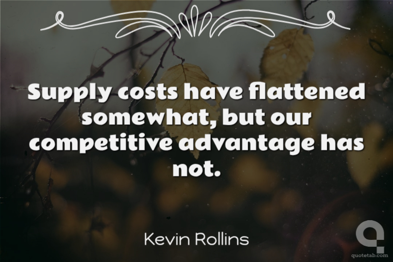 Supply costs have flattened somewhat, but our competitive advantage has not.