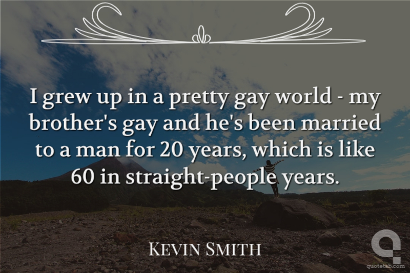 I grew up in a pretty gay world - my brother's gay and he's been married to a man for 20 years, which is like 60 in straight-people years.