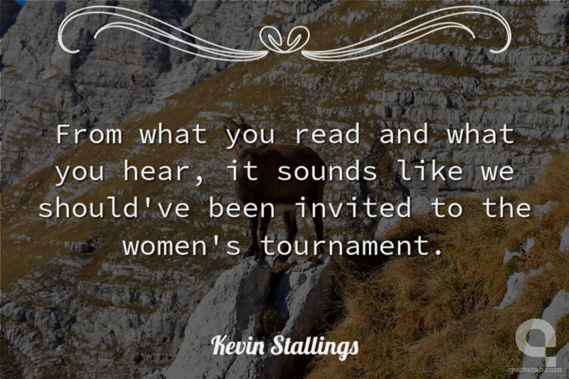 From what you read and what you hear, it sounds like we should've been invited to the women's tournament.