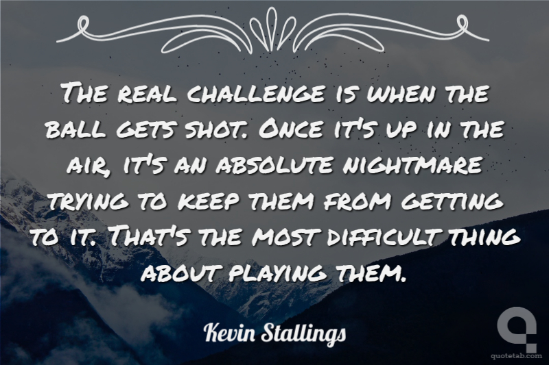The real challenge is when the ball gets shot. Once it's up in the air, it's an absolute nightmare trying to keep them from getting to it. That's the most difficult thing about playing them.