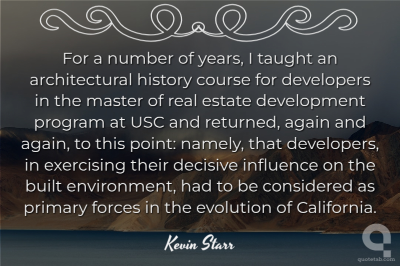 For a number of years, I taught an architectural history course for developers in the master of real estate development program at USC and returned, again and again, to this point: namely, that developers, in exercising their decisive influence on the built environment, had to be considered as primary forces in the evolution of California.