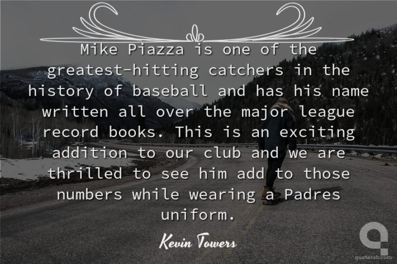 Mike Piazza is one of the greatest-hitting catchers in the history of baseball and has his name written all over the major league record books. This is an exciting addition to our club and we are thrilled to see him add to those numbers while wearing a Padres uniform.